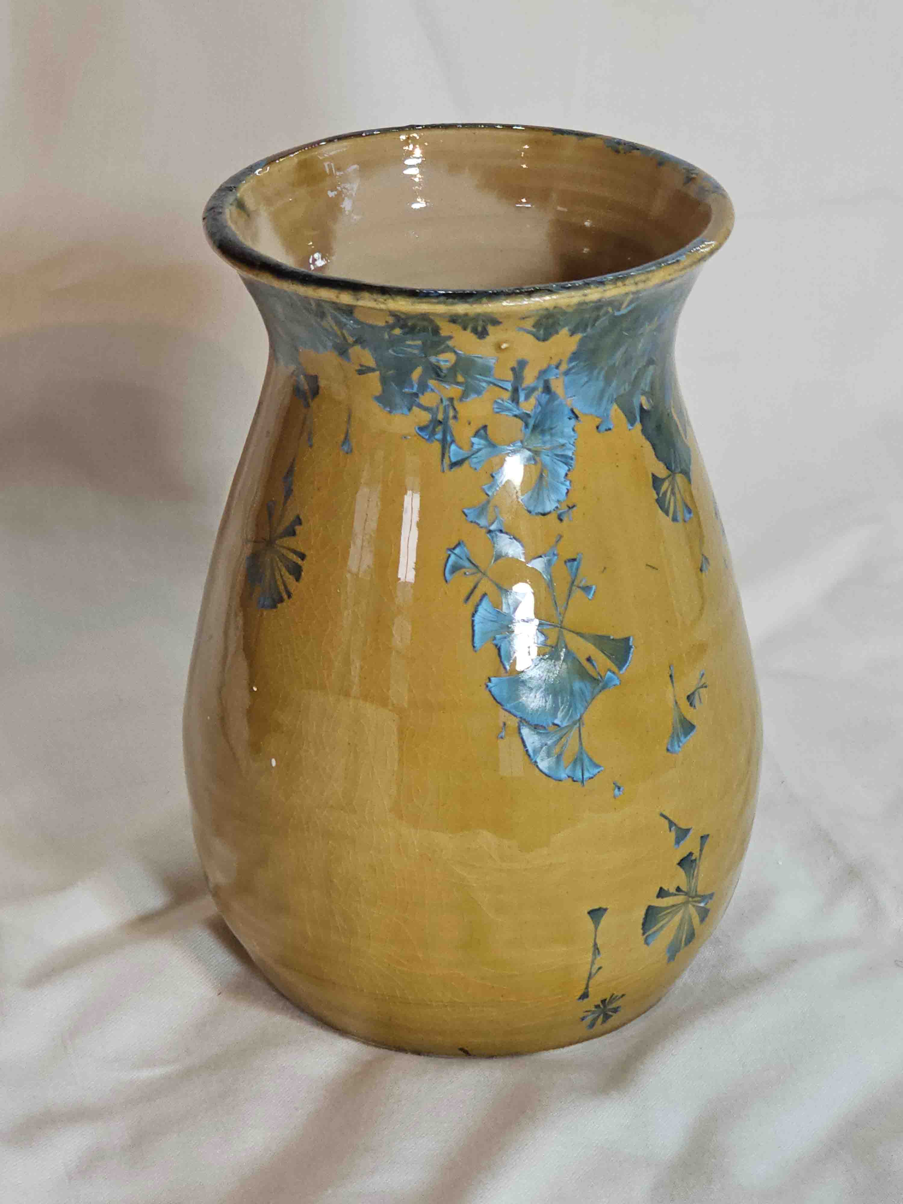 Large Vase stoneware blue & yellow crystal glaze Ht 22cm