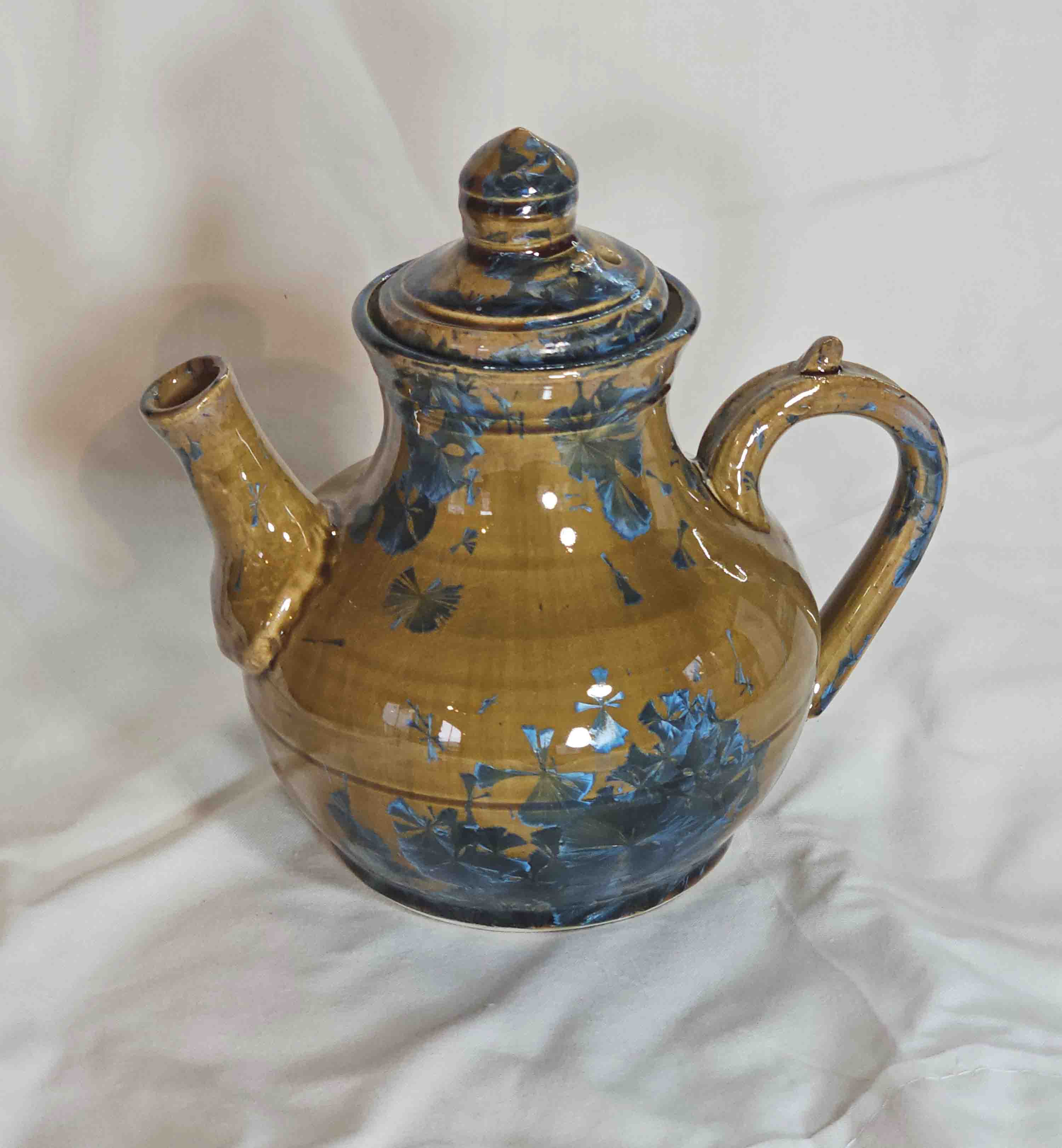 Large Tea/Coffee Pot blue & yellow crystal glaze