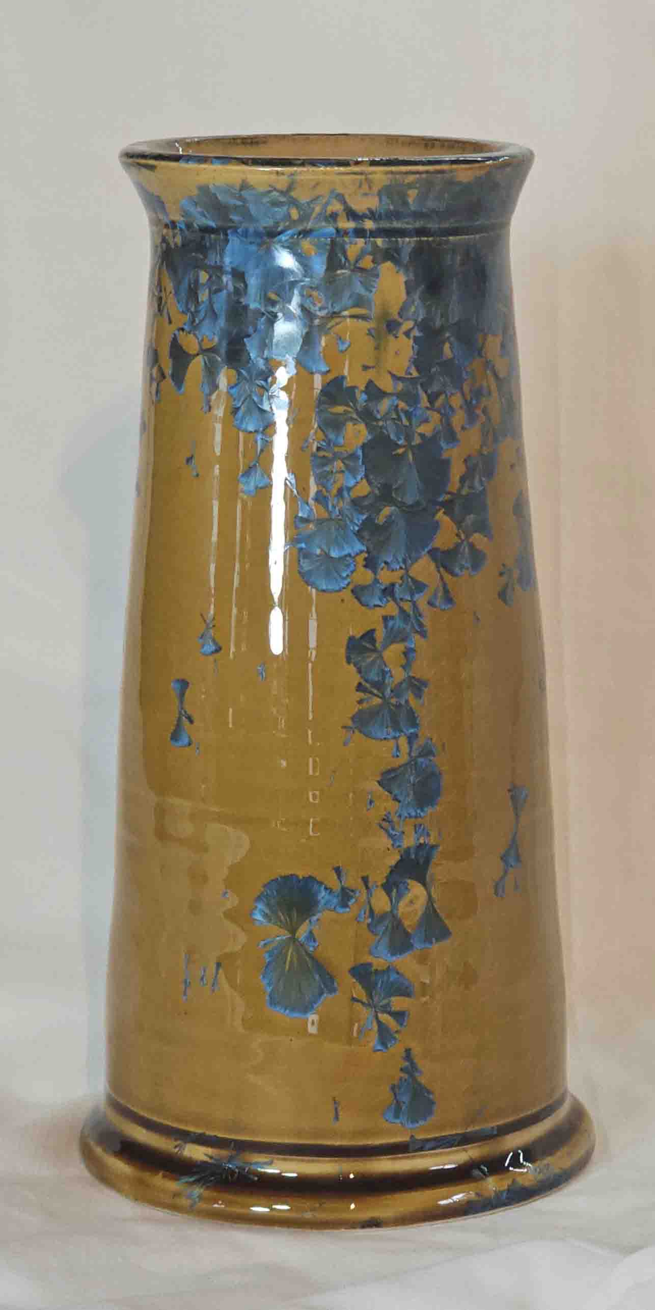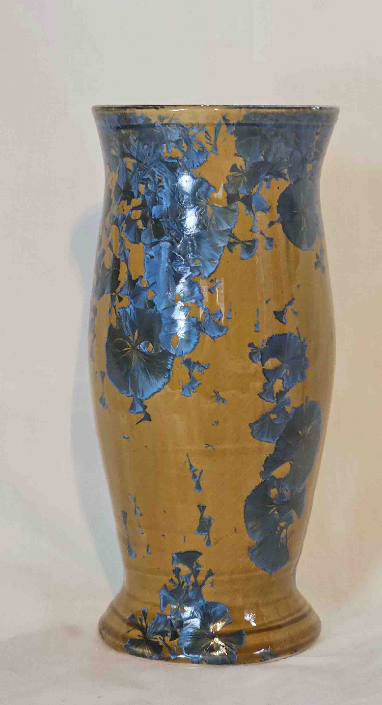 Tall tapering stoneware vase blue & yellow crystal glaze 24cm