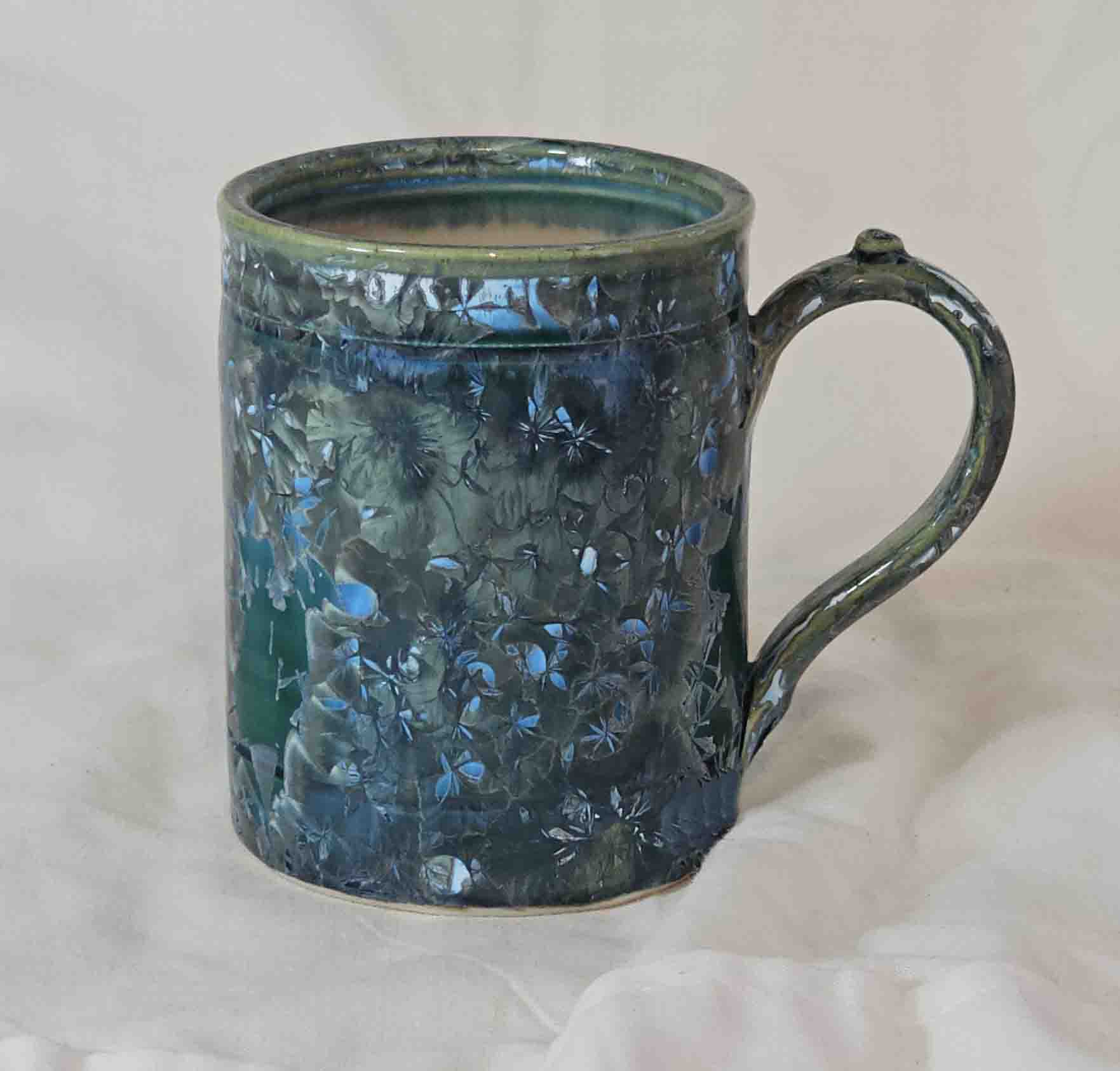 Straight Mug in Stoneware, blue crystal glaze. Vol 325cc Ht 10.6cm Diam 8.8cm